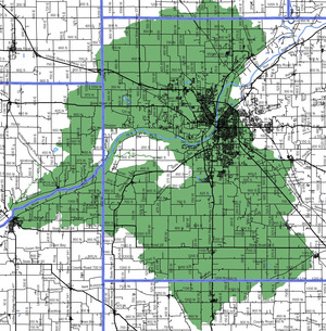 The Historic Centennial Neighborhood lies just north of the commercial district in Lafayette Indiana. The neighborhood includes areas of the original plat of Lafayette from 1825, additional lands platted in 1829 as the Bartholomew and Davis Addition to the city of Lafayette, as well as other smaller plats. The neighborhood encompasses the region from Ferry St north to Union St, and 9th St west to the Wabash river. The neighborhood grew rapidly after the Wabash and Erie canal was built in 1843 along its western border, and again with the arrival of the railroad, which ran down the center of 5th street.