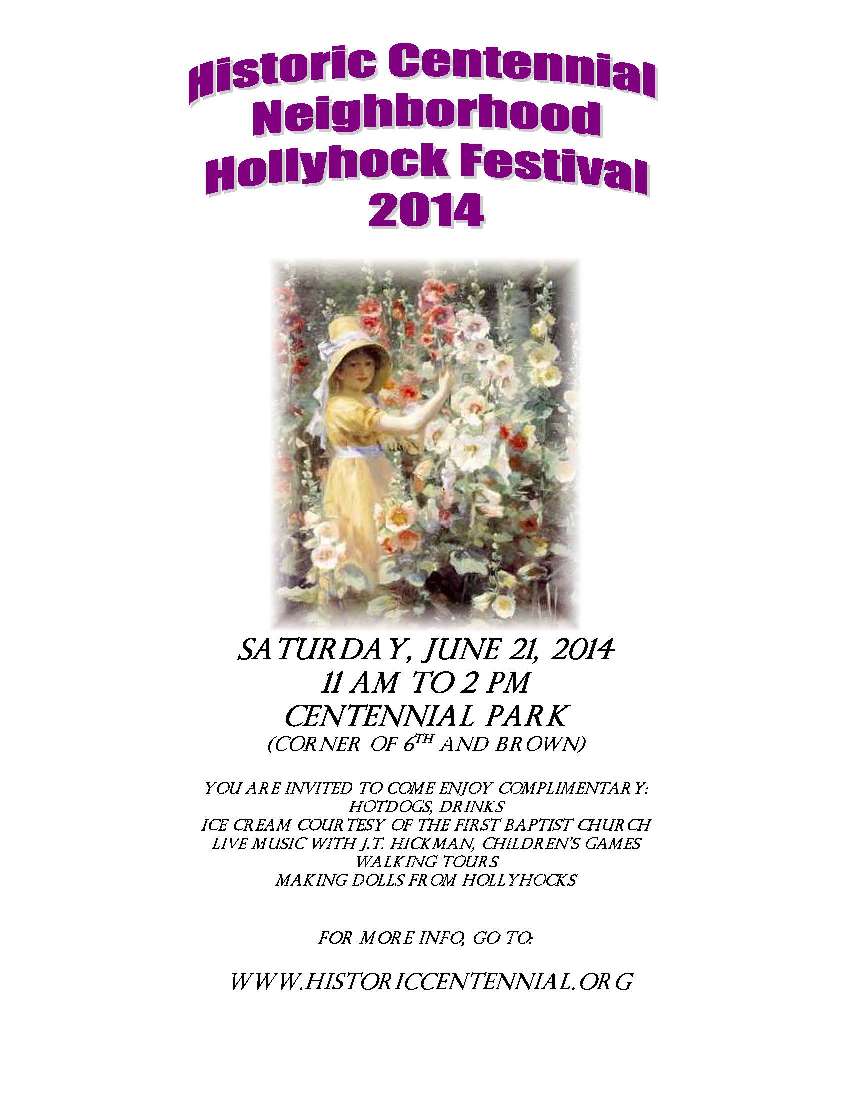 The Eighth Annual Hollyhock Festival was Saturday, June 21, 11:00 am - 2:00 pm at Centennial Park (at the corner of 6th and Brown in Lafayette, Indiana).